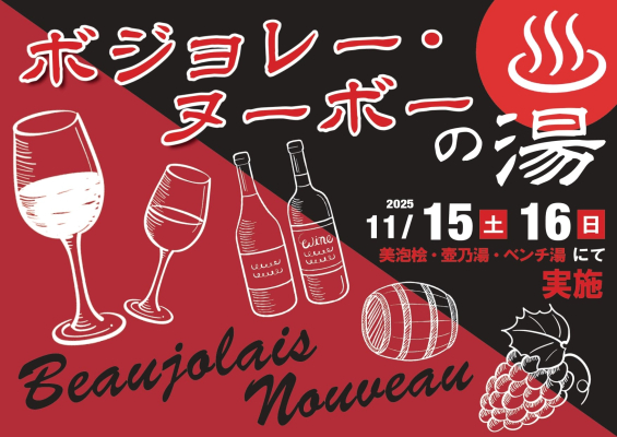 11/15(土)と11/16(日)は、露天桧乃湯にて「ボジョレー・ヌーボーの湯」を開催致します。