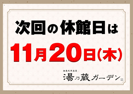 日頃より湘南天然温泉 湯乃蔵ガーデンをご愛顧いただき、ありがとうございます。