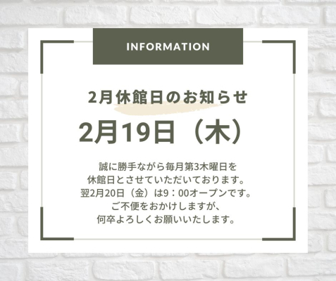 いつも当館をご利用いただきまして、誠にありがとうございます。