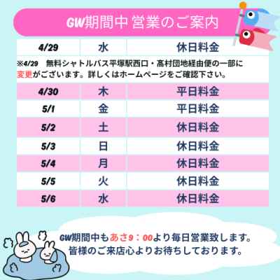 湯乃蔵ガーデンはゴールデンウィークも
