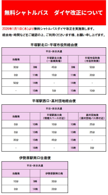 2026年1月1日(木)より、当館無料シャトルバスのダイヤ改正を実施致します。