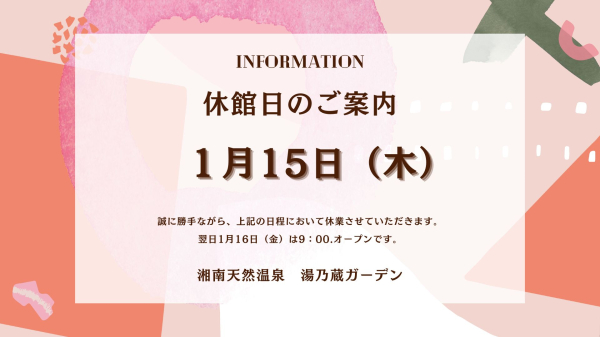 日頃より湘南天然温泉湯乃蔵ガーデンをご愛顧いただきありがとうございます。